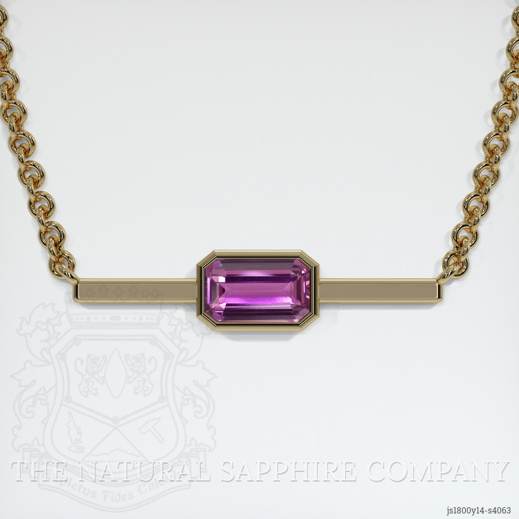 Set within 14K yellow gold, the necklace offers an exquisite contrast. The warm golden glow gently cradles the purple sapphire, allowing its brilliance to shine unobstructed yet harmoniously. The purity and grace of the yellow gold setting is a perfect bed for the purple gemstone, creating a blend of elegance and luxury. As you run your fingers over its polished surface, one can sense the careful handiwork and devotion poured into its making. This crafted treasure is not merely a piece of jewelry but a confluence of nature’s beauty and human skill.