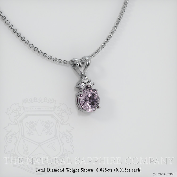 The pendant features a beautiful, transparent 0.92 carat oval shape violet sapphire with the dimensions of 6.09 x 5.64 x 3.56 mm and a mixed brilliant cut. It has a clarity grade of very slightly included (evaluated at eye level), medium color saturation, and an excellent polish. The origin of this sapphire is Montana.
