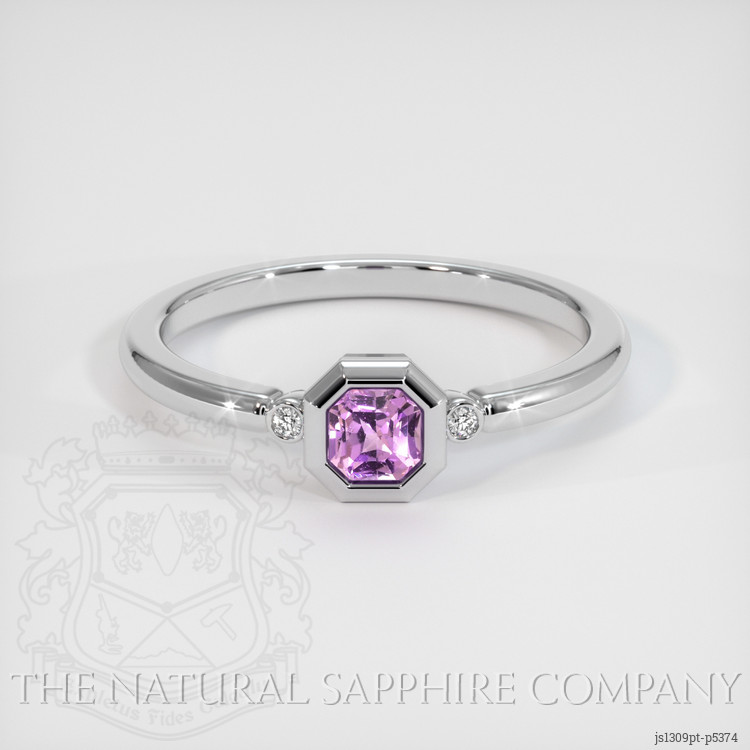 The ring features a beautiful, transparent 0.42 carat asscher - octagon shape pink sapphire with the dimensions of 4.07 x 4.03 x 2.80 mm and a asscher cut. It has a clarity grade of very slightly included (evaluated at eye level), medium intense color saturation, and an excellent polish. The origin of this sapphire is Madagascar.