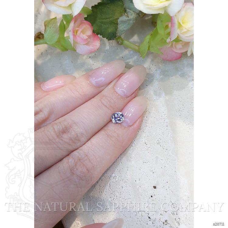 Introducing a timeless masterpiece, our magnificent ring, a symphony of elegance and artistry, is a tribute to the meticulous craftsmanship that defines The Natural Sapphire Company's commitment to excellence. At its heart lies an exquisite 1.11 carat cushion-shaped purple sapphire, sourced from the ethereal landscapes of Montana, where the Earth's magnificence nurtures creations of unparalleled splendor. This sapphire, with dimensions of 6.26 x 5.42 x 3.78 mm, showcases a mixed brilliant cut that irresistibly captures the light, radiating a hypnotic dance of colors that captivates the beholder’s gaze. Its transparency and medium intense color saturation, combined with an eye-clean clarity, affirm its status as a gem of extraordinary beauty and rarity.