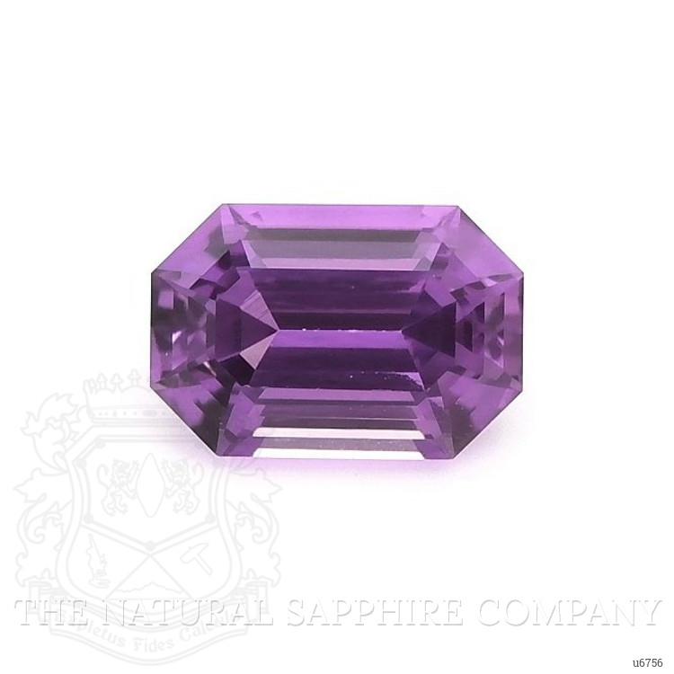 The ring features a beautiful, transparent 0.64 carat emerald cut shape purple sapphire with the dimensions of 5.97 x 4.07 x 2.87 mm and a emerald cut. It has a clarity grade of eye clean (evaluated at eye level), intense color saturation, and an excellent polish. The origin of this sapphire is Ceylon (Sri Lanka).