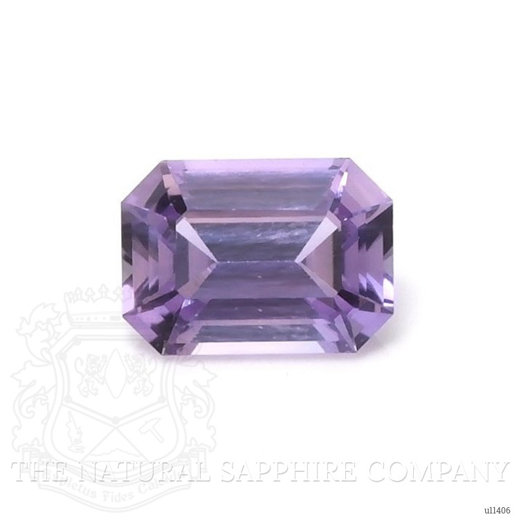 The ring features a beautiful, transparent 1.14 carat emerald shape purple sapphire with the dimensions of 7.09 x 5.10 x 3.41 mm and a emerald cut. It has a clarity grade of very slightly included (evaluated at eye level), medium color saturation, and an excellent polish. The origin of this sapphire is Ceylon (Sri Lanka).