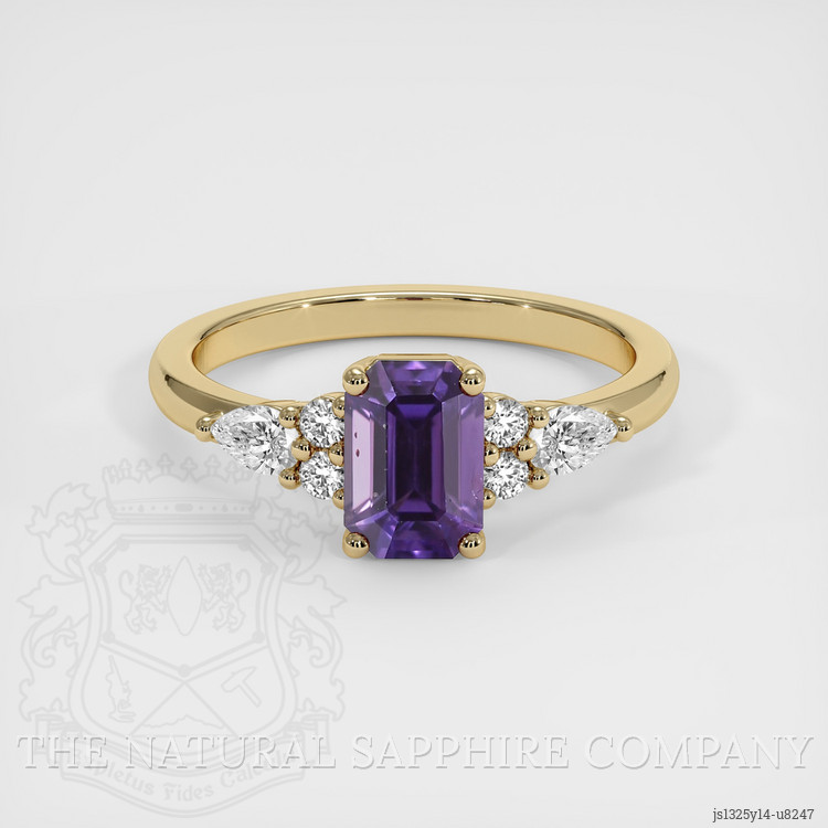 Discover the timeless allure of our exquisitely crafted ring, featuring a stunning 1.20 carat emerald cut purple sapphire sourced from the enchanting lands of Ceylon, Sri Lanka. This majestic gem, measuring 6.96 x 4.91 x 3.74 mm, captures the essence of elegance and sophistication that has transcended generations. Each facet of the sapphire is meticulously cut to reveal its vivid color saturation and excellent polish, making it a perfect testament to the craft of gemstone artistry. The clarity of the sapphire is accompanied by subtle inclusions, adding character and uniqueness to the gemstone, much like the distinct signature of a masterpiece painting. This allows the gem to tell its own story, rooted in the rich geological processes of its origin, ultimately reflecting the beauty and rarity that nature has bestowed upon it.