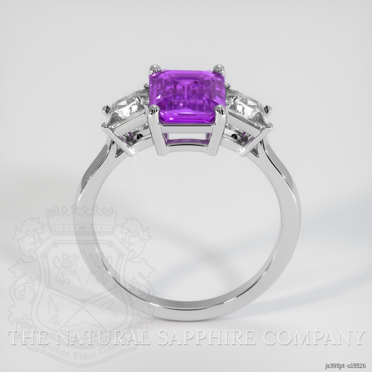The ring features a beautiful, transparent Other certified Purple 2.16 carat emerald cut shape purple sapphire with the dimensions of 9.58 x 6.26 x 3.08 mm and a emerald cut. It has a clarity grade of very slightly included (evaluated at eye level), intense color saturation, and an excellent polish. The origin of this sapphire is Ceylon (Sri Lanka).