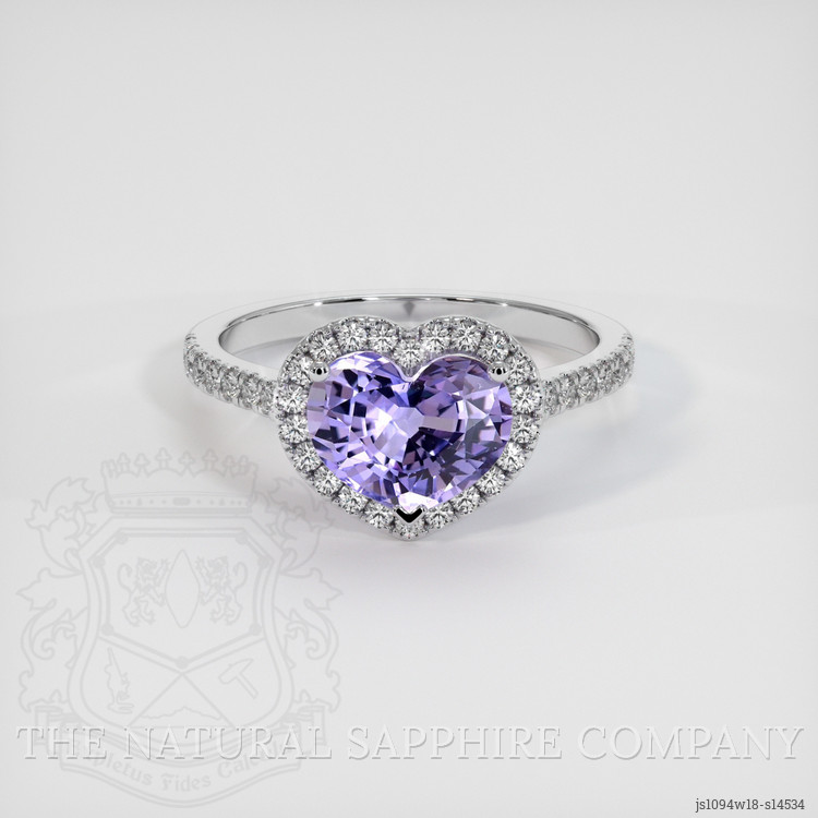 In the heart of our collections at The Natural Sapphire Company lies a masterpiece that effortlessly marries tradition with timeless elegance. The center of this exquisite ring features a transparent 2.69-carat heart-shaped purple sapphire, its origins steeped in the rich history of Ceylon, known today as Sri Lanka. With dimensions of 7.07 by 8.93 by 5.31 mm, this gemstone boasts a mixed brilliant cut that enhances its captivating violet hue and medium intense color saturation, creating a visual symphony that is classic yet remarkably unique. The sapphire's clarity, graded as very slightly included when viewed at eye level, adds an intriguing character to its pristine appearance. Its excellent polish ensures a lustrous presentation that prides itself in a legacy of refinement and beauty.