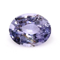 The ring features a beautiful, transparent 0.65 carat oval shape purple sapphire with the dimensions of 5.71 x 4.55 x 3.22 mm and a mixed brilliant cut. It has a clarity grade of very slightly included (evaluated at eye level), medium color saturation, and an excellent polish. The origin of this sapphire is Ceylon (Sri Lanka).