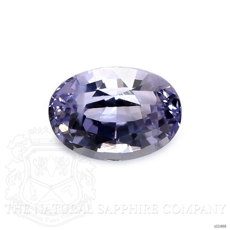 The ring features a beautiful, transparent 0.86 carat oval shape purple sapphire with the dimensions of 6.34 x 4.58 x 3.66 mm and a mixed brilliant cut. It has a clarity grade of very slightly included (evaluated at eye level), medium color saturation, and an excellent polish. The origin of this sapphire is Ceylon (Sri Lanka).