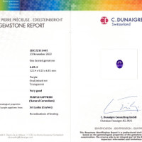 Experience unparalleled elegance with our exquisite sapphire ring from The Natural Sapphire Company. At the heart of this masterfully crafted piece lies a stunning C.Dunaigre certified purple sapphire, weighing 6.69 carats and elegantly cut into an oval shape with dimensions of 12.15 x 9.23 x 6.83 mm. Its mixed brilliant cut is a testament to meticulous craftsmanship, giving off a breathtaking sparkle that is sure to captivate. Unlike many sapphires on the market, this gem boasts a clarity grade of very slightly included, evaluated at eye level, allowing its vibrant color to shine through with perfect clarity. Its medium intense color saturation adds depth and richness, harmonizing beautifully with its excellent polish. Originating from Ceylon, Sri Lanka, renowned for producing some of the world's most exceptional sapphires, this stone represents the ideal blend of quality and aesthetic appeal.