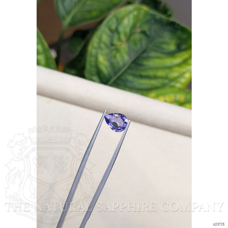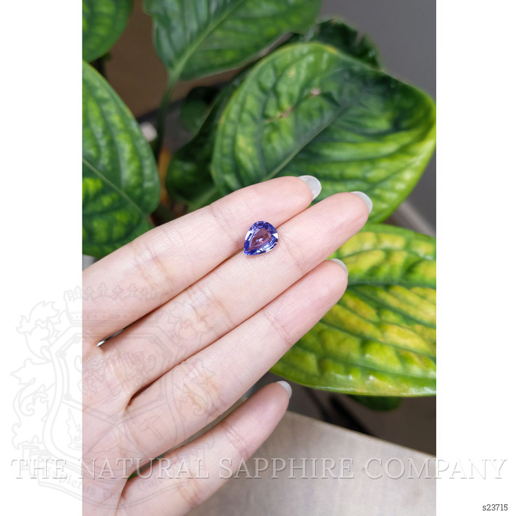 Discover the extraordinary elegance of The Natural Sapphire Company's latest creation, a stunning ring that embodies both sophistication and unparalleled craftsmanship. At its heart lies a breathtaking 2.60 carat pear-shaped purple sapphire, sourced directly from the gem-rich lands of Madagascar. This exquisite gem, with dimensions of 10.23 x 7.87 x 3.90 mm, is masterfully cut in a mixed brilliant style to enhance its innate brilliance and create an alluring play of light. Its medium intense color saturation and clarity grade of very slightly included ensure an unmatched depth and vibrancy that set it apart from other sapphires available in the market.