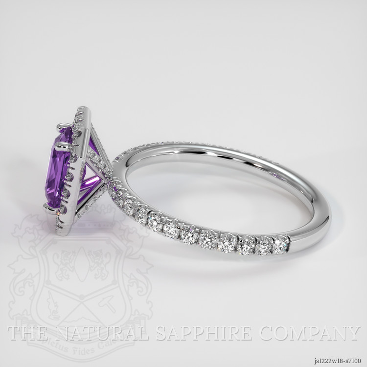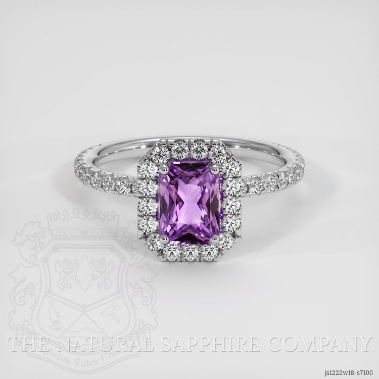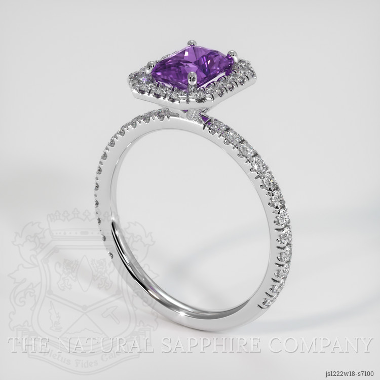 Presenting a masterpiece from The Natural Sapphire Company, this exquisite ring encapsulates the essence of unparalleled gemstone craftsmanship. At its heart lies a stunning 1.37 carat radiant shape purple sapphire, renowned for its captivating allure and exceptional quality. With dimensions measuring 7.26 x 5.39 x 3.53 mm, this sapphire boasts a radiant cut that optimizes light performance, revealing an intense color saturation that stands as a testament to its Ceylon (Sri Lanka) origin. Its clarity grade is eye clean, ensuring that each glance captures its flawless beauty, enhanced further by an excellent polish that magnifies its brilliance.