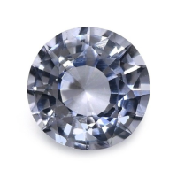 The ring features a beautiful, transparent 0.49 carat round shape blue sapphire with the dimensions of 4.89 x 4.82 x 3.06 mm and a mixed brilliant cut. It has a clarity grade of eye clean (evaluated at eye level), medium light color saturation, and an excellent polish. The origin of this sapphire is Ceylon (Sri Lanka).