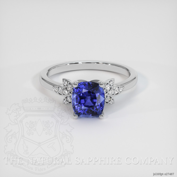 Presenting a truly exceptional piece from The Natural Sapphire Company, this exquisite ring prominently features a 2.06 carat purplish blue sapphire that commands attention with its stunning transparency and captivating hue. The sapphire is fashioned in a cushion shape with dimensions of 6.98 x 6.33 x 5.24 mm, showcasing a mixed brilliant cut that beautifully enhances its brilliance. Graded as very very slightly included at eye level, it boasts vivid color saturation and an excellent polish, speaking to both its quality and the meticulous craftsmanship involved. The sapphire originates from the renowned mines of Ceylon (Sri Lanka), famed for producing some of the world's finest sapphires. To achieve its vibrant allure, the gemstone has undergone heat treatment, a traditional enhancement technique that accentuates its natural beauty.