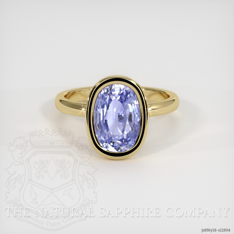 Bezel Purplish Blue Sapphire Ring 3.46 Ct., 18K Yellow Gold