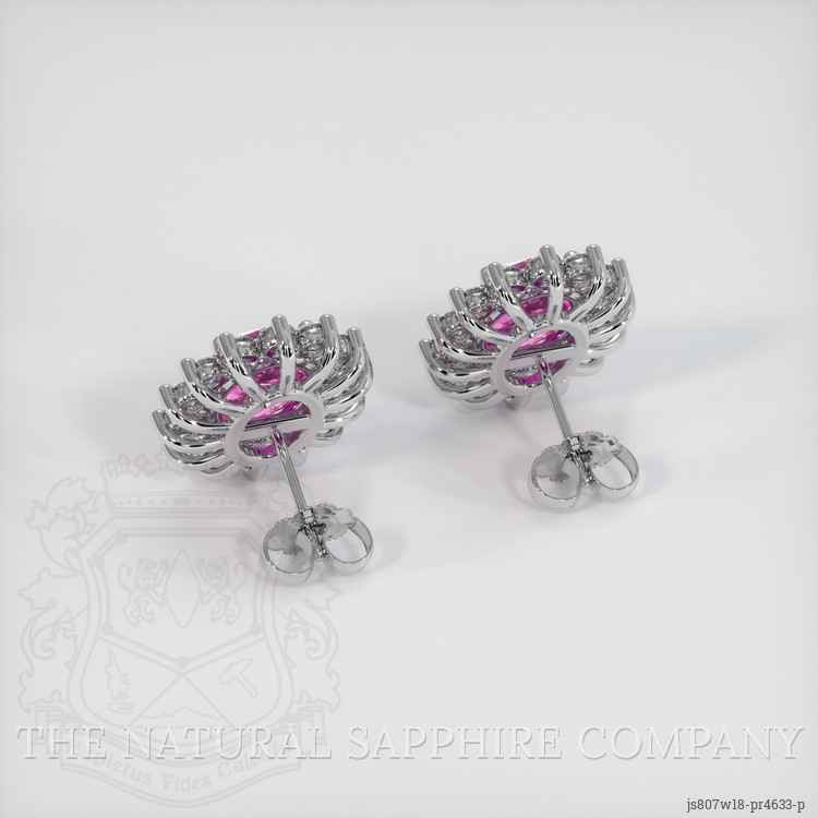 Halo Purplish Pink Sapphire Earring 4.33 Ct.Tw.Total Carat Weight, 18K White Gold