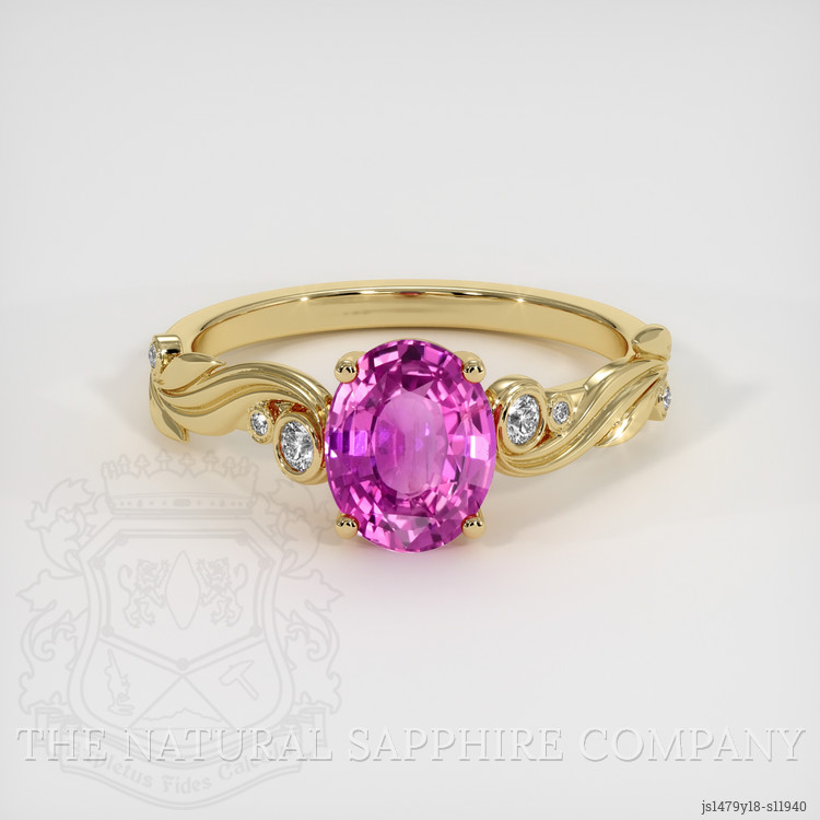 Accent Stones Purplish Pink Sapphire Ring 2.03 Ct., 18K Yellow Gold