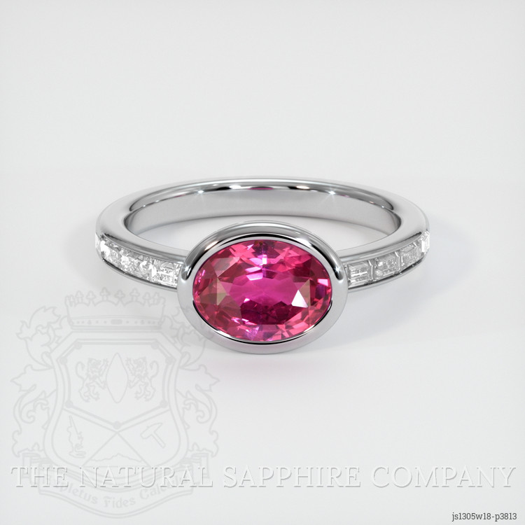 Accent Stones Purplish Pink Sapphire Ring 2.06 Ct., 18K White Gold