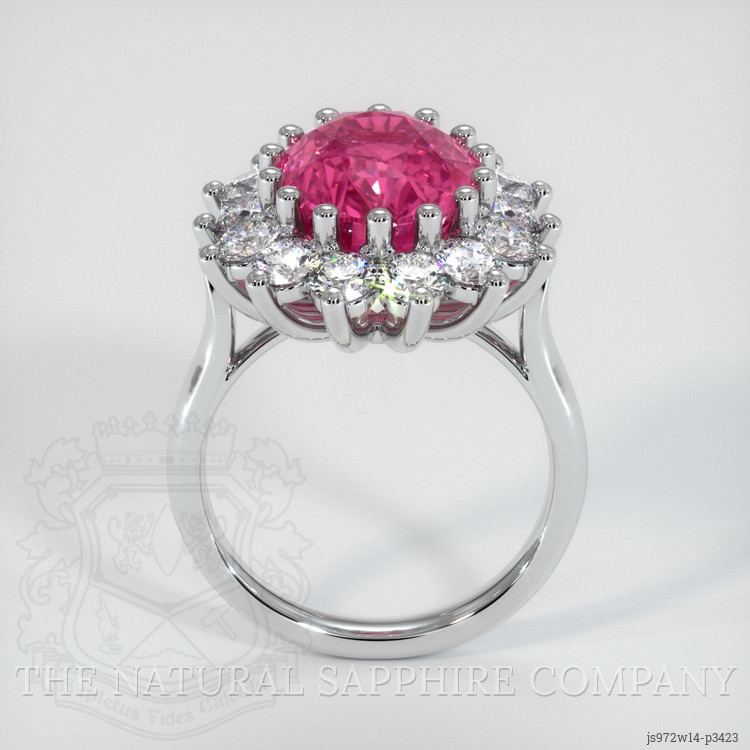 Halo Purplish Pink Sapphire Ring 8.00 Ct., 14K White Gold