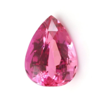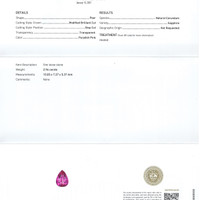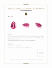 The ring features a beautiful, transparent GIA certified Purplish Pink 2.96 carat pear shape purplish pink sapphire with the dimensions of 10.05 x 7.38 x 5.38 mm and a mixed brilliant cut. It has a clarity grade of very slightly included (evaluated at eye level), vivid color saturation, and an excellent polish. The origin of this sapphire is Ceylon (Sri Lanka).
