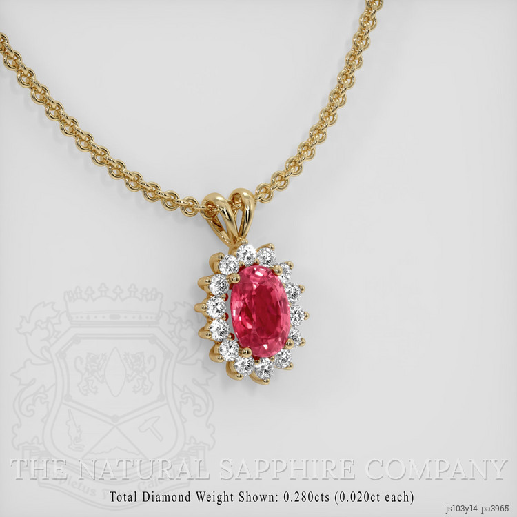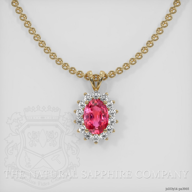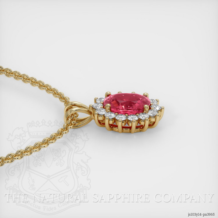 Halo Reddish Pink Sapphire Pendant 1.02 Ct., 14K Yellow Gold