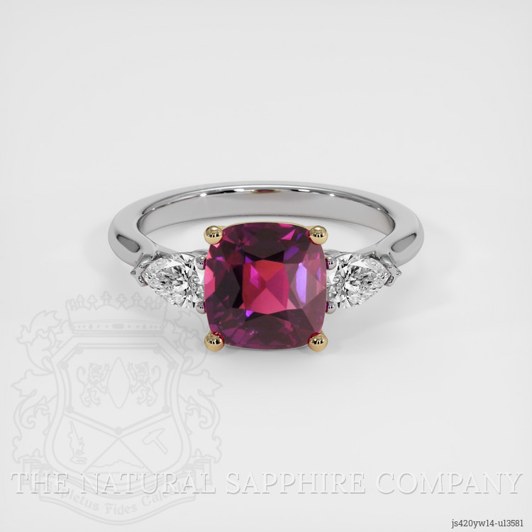 Three Stone Reddish Pink Sapphire Ring 3.07 Ct., 14K Yellow & White