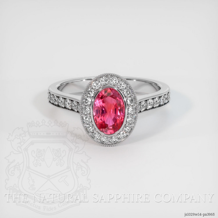 Pave Reddish Pink Sapphire Ring 1.02 Ct., 14K White Gold