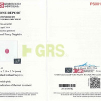 The ring features a beautiful, transparent GRS certified Brownish Pink 1.83 carat oval shape pinkish red - reddish pink sapphire with the dimensions of 9.01 x 7.29 x 3.31 mm and a mixed brilliant cut. It has a clarity grade of very slightly included (evaluated at eye level), vivid color saturation, and an excellent polish. The origin of this sapphire is Ceylon (Sri Lanka).