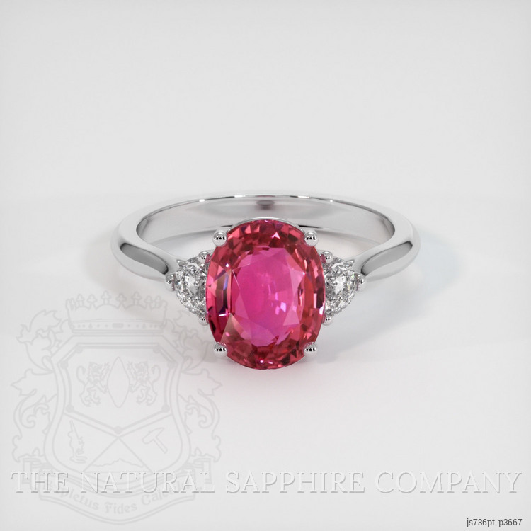Three Stone Reddish Pink Sapphire Ring 3.10 Ct., Platinum 950