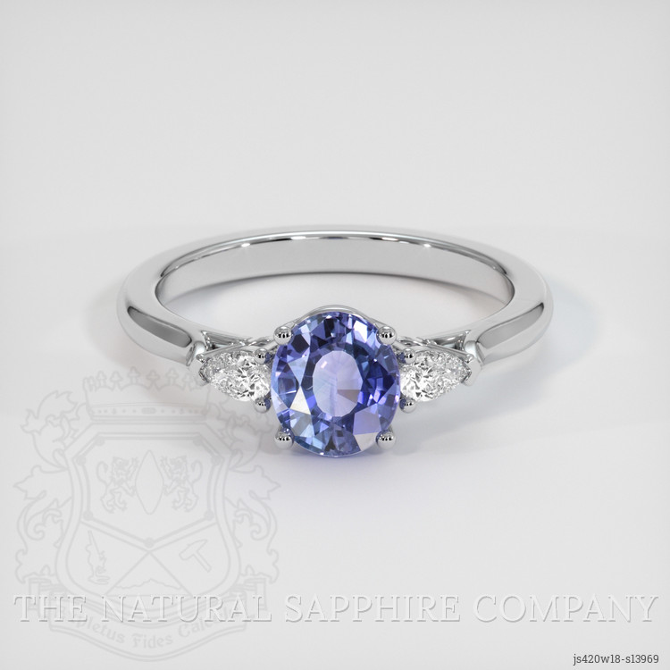 Three Stone Violet Sapphire Ring 1.58 Ct., 18K White Gold