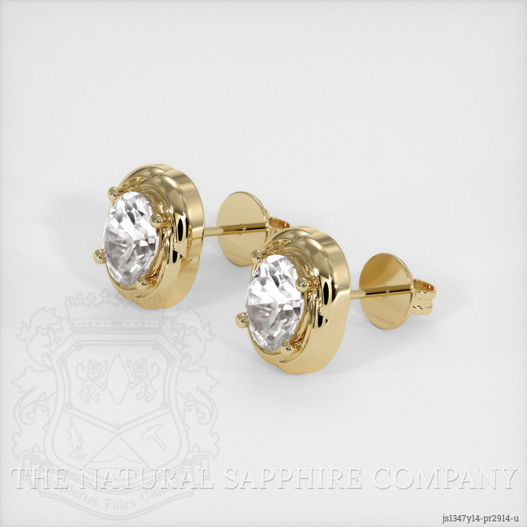 Studs White Sapphire Earring 2.48 Ct.Tw.Total Carat Weight, 14K Yellow Gold