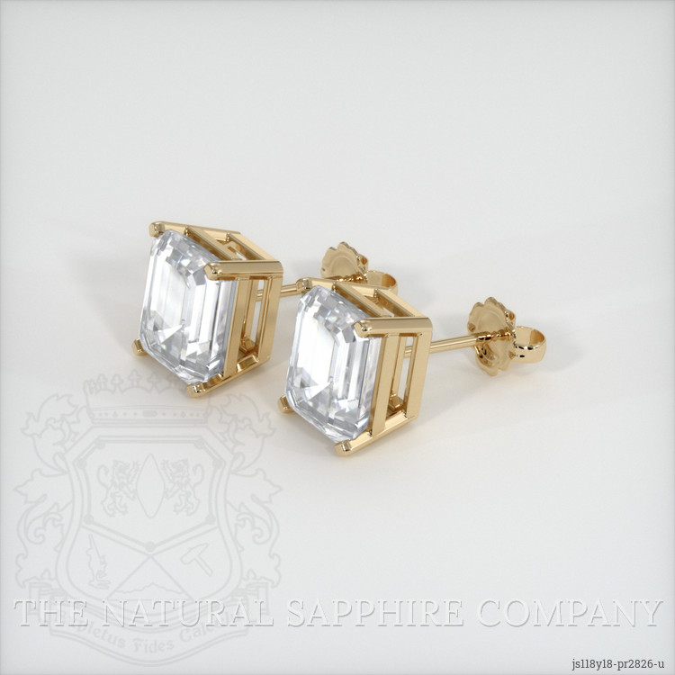 Studs White Sapphire Earring 8.24 Ct.Tw.Total Carat Weight, 18K Yellow Gold