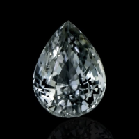 The pendant features a beautiful, transparent 0.73 carat pear shape white sapphire with the dimensions of 6.06 x 4.50 x 3.72 mm and a mixed brilliant cut. It has a clarity grade of very slightly included (evaluated at eye level), near colorless color saturation, and an excellent polish. The origin of this sapphire is Ceylon (Sri Lanka).