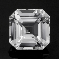 The ring features a beautiful, transparent 2.62 carat asscher shape white sapphire with the dimensions of 7.37 x 7.31 x 5.02 mm and a asscher cut. It has a clarity grade of eye clean (evaluated at eye level), colorless color saturation, and an excellent polish. The origin of this sapphire is Ceylon (Sri Lanka).