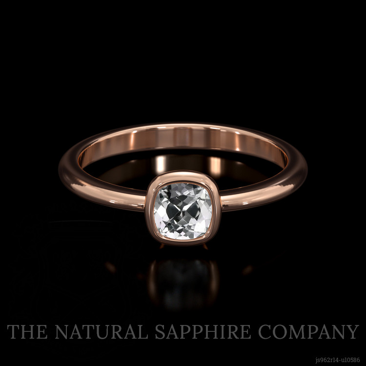 The men's ring features a beautiful, transparent 0.51 carat cushion shape white sapphire with the dimensions of 4.59 x 4.45 x 3.20 mm and a mixed brilliant cut. It has a clarity grade of eye clean (evaluated at eye level), colorless color saturation, and an excellent polish. The origin of this sapphire is Montana.