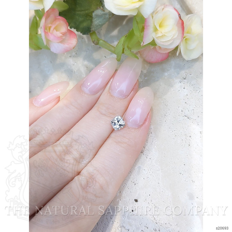 The white sapphire boasts a clarity grade of very slightly included, meaning it possesses only minor inclusions that are not visible to the naked eye, ensuring that its near colorless saturation is free to exude an understated elegance. Such clarity, coupled with its excellent polish, signifies the meticulous attention to detail paid in its preparation. It is truly a testament to nature's artistry complemented by human skill, enhanced only by the absence of treatments, allowing it to remain in its purest form.