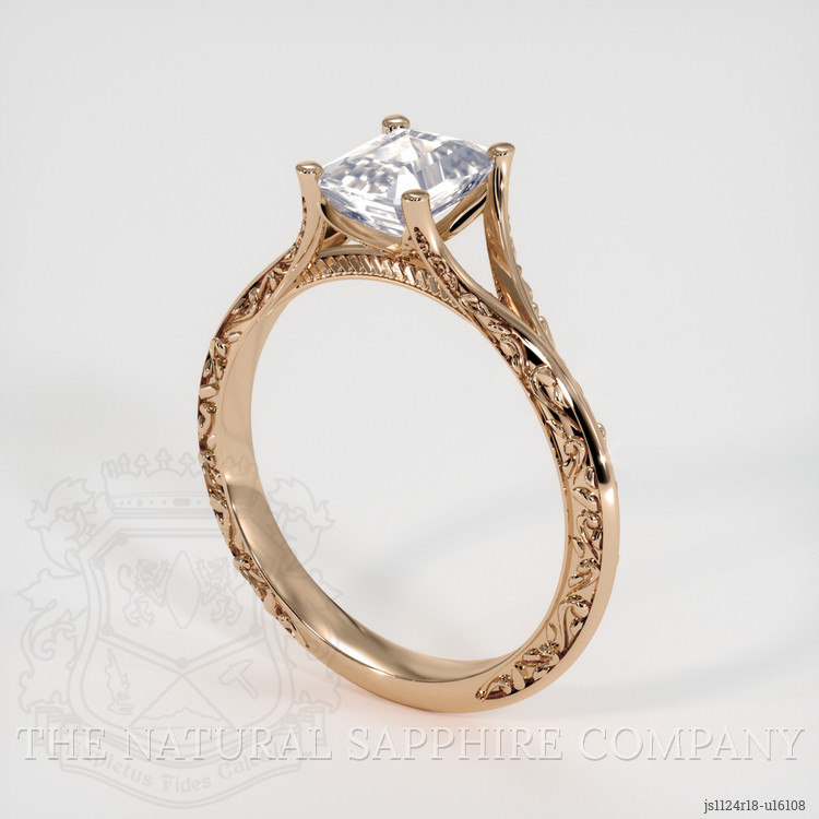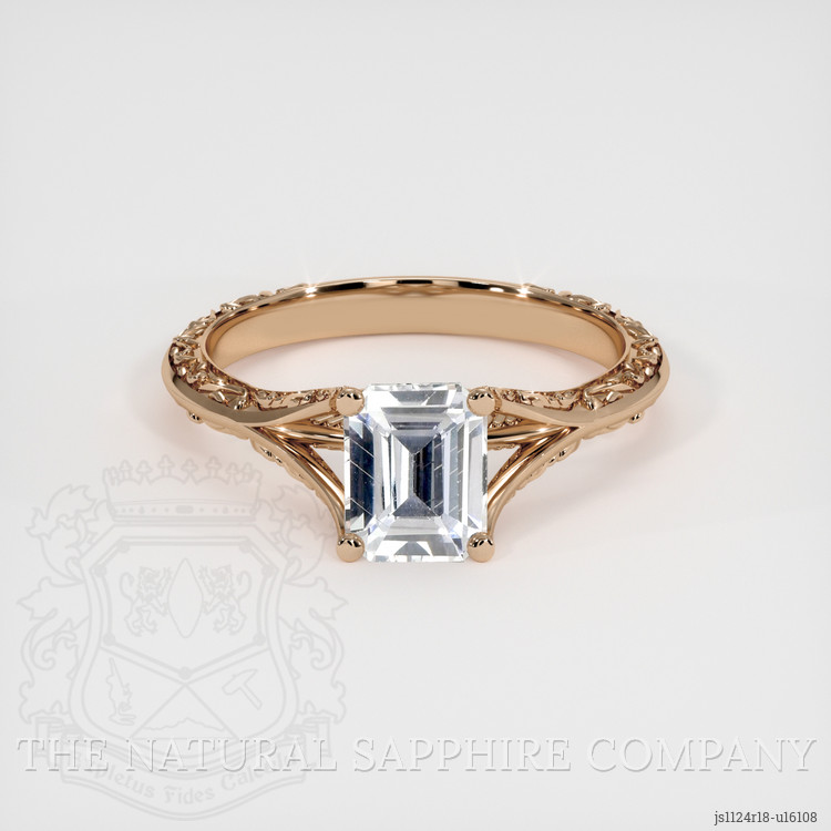 The design brings together graceful aesthetics and everyday practicality in equal measure. The stone is set in warm 18K rose gold, a metal choice that bathes the pure white center in a flattering soft glow, creating a sophisticated contrast that suits both modern and vintage sensibilities. The mounting is thoughtfully engineered to balance display and durability, with a secure prong setting that raises the emerald cut just enough to welcome light into its table and step facets, while keeping the profile comfortable for daily wear. The band is finely detailed with delicate engraving and milgrain accents that catch the eye without overpowering the central sapphire, and the gallery beneath the stone is open enough to allow light and easy cleaning, yet designed to protect the pavilion from knocks. This is a ring that performs as beautifully as it looks. It is resilient by design, benefiting from the natural hardness of corundum, and from solid 18K rose gold construction that resists everyday wear, ensuring the piece remains both wearable and treasured for a lifetime.