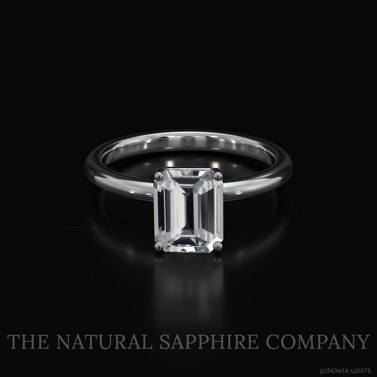 Introducing an exquisite piece from The Natural Sapphire Company, this sophisticated ring is designed to be a timeless treasure for those who value elegance and quality. At its heart is a 1.59 carat emerald cut white sapphire, renowned for its clarity and brilliance. With dimensions of 7.25 x 6.06 x 3.68 mm, the gemstone exhibits an emerald cut that enhances its eye-catching transparency. It boasts a very slightly included clarity grade, evaluated at eye level, ensuring a near-flawless appearance to the discerning eye. The sapphire's near colorless saturation captures the light beautifully, adding a subtle sparkle to any occasion.