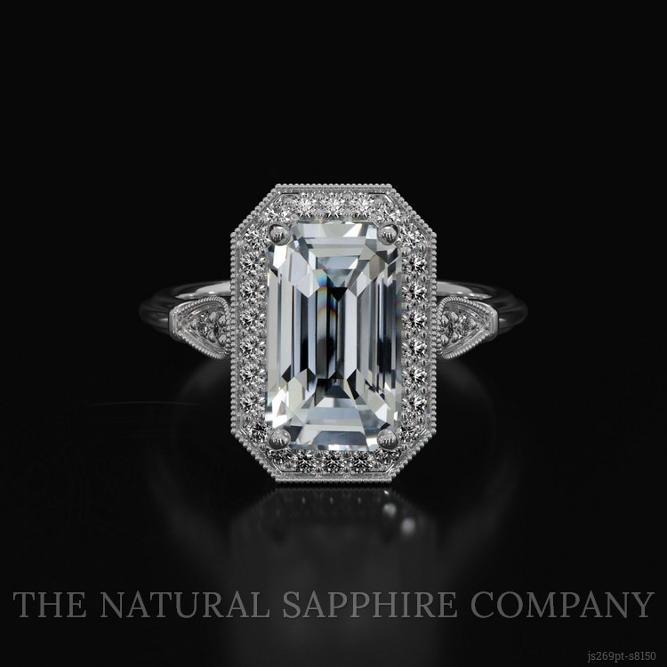 Discover the epitome of elegance with our stunning ring from The Natural Sapphire Company. This exquisite piece is designed to capture attention and admiration. Featuring a central 3.57 carat emerald cut white sapphire, the ring showcases the gem's breathtaking clarity and near colorless saturation. Measuring 10.73 x 6.35 x 5.02 mm, the sapphire from Ceylon, Sri Lanka exudes a timeless allure. Its clarity grade of eye clean ensures a pure, unblemished visual experience, making it an ideal centerpiece for those who seek the extraordinary. The excellent polish of the sapphire magnifies its brilliance and sets the stage for the story of sophistication that unfolds with every glance.