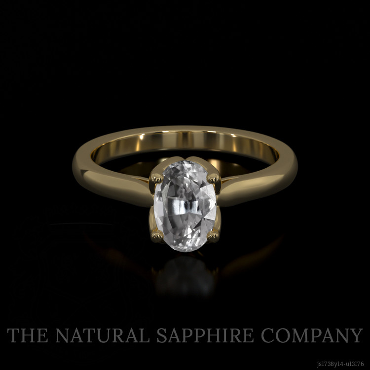 Introducing an exquisite blend of nature's beauty and masterful craftsmanship: Our 14K yellow gold ring featuring a magnificent 1.09 carat oval white sapphire, hailing from the rugged terrains of Montana. This piece, a crowning jewel of The Natural Sapphire Company, is more than just an ornament—it's a narrative steeped in the rich tapestry of earthy origins and human artistry. Each facet of the mixed brilliant cut reflects the timeless journey of this gemstone, capturing light in a dance as ancient as the mountains from which it came. Every glance at its near colorless clarity and eye-clean brilliance is a testament to nature’s ability to craft beauty that transcends time.