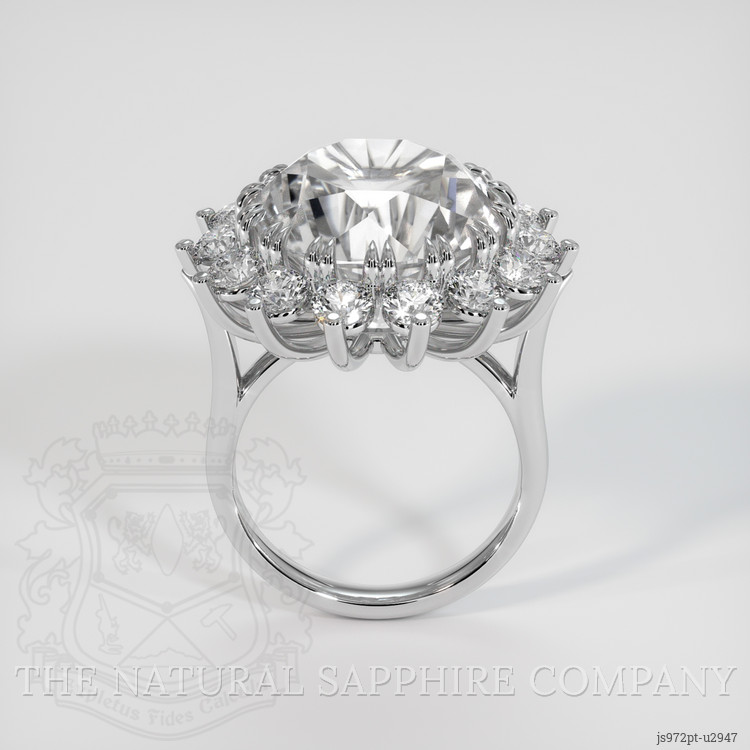 Surrounding the central stone is a halo of white round natural diamonds totaling approximately 2.24 carats, graded Very Slightly Included in clarity across VS1 and VS2, and a color grade of F, set with precision in durable and elegant platinum 950. The result is a timeless design that marries the ancient prestige of Ceylon gemstones with the disciplined standards of modern gemology. Each element has been selected to celebrate origin, authenticity, and enduring style, a combination that makes this ring a legacy piece intended to be cherished across generations. At The Natural Sapphire Company we take pride in sourcing and presenting stones with documented origin, and this ring exemplifies our commitment to provenance, craftsmanship, and honest gem grading. If you are drawn to stones with a storied past and an uncompromising presence, this white Ceylon sapphire ring offers a rare opportunity to own a piece of geological and cultural history.