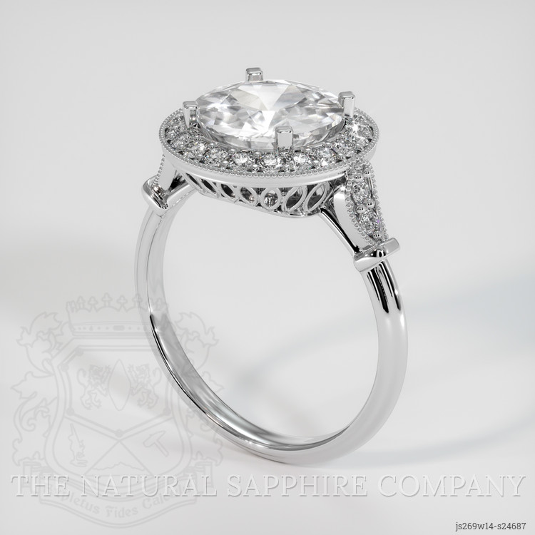 Antique Style White Sapphire Ring 2.39 Ct., 14K White Gold