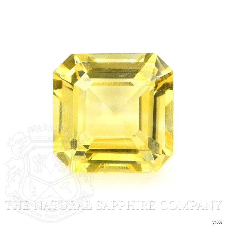The ring features a beautiful, transparent 2.31 carat asscher - octagon shape yellow sapphire with the dimensions of 7.50 x 7.45 x 4.05 mm and a asscher cut. It has a clarity grade of very slightly included (evaluated at eye level), medium intense color saturation, and an excellent polish. The origin of this sapphire is Ceylon (Sri Lanka).