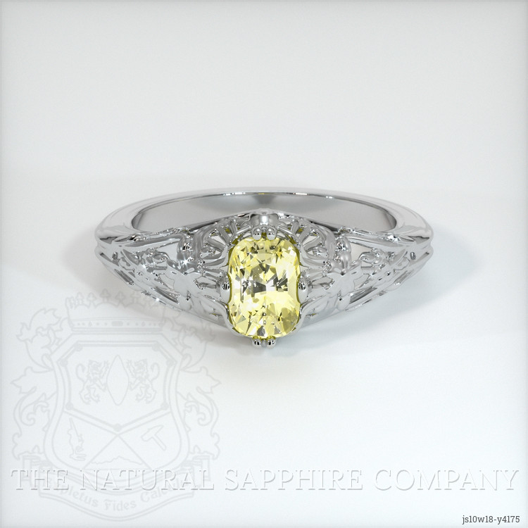 Antique Style Yellow Sapphire Ring 1.28 Ct., 18K White Gold