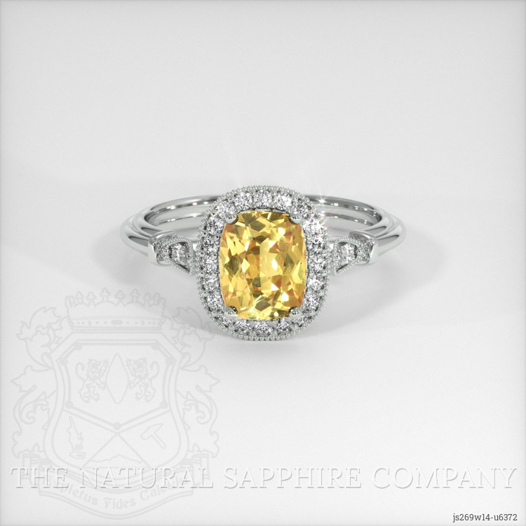 Antique Style Yellow Sapphire Ring 1.65 Ct., 14K White Gold