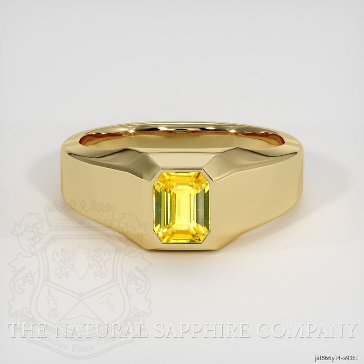 Introducing a sophisticated addition to any discerning gentleman's collection, The Natural Sapphire Company presents a distinguished men's ring, embodying elegance and refinement. At the heart of this exquisite piece sparkles a 2.08 carat emerald cut yellow sapphire, reflecting the dynamic essence of its wearer. This gemstone, with precise dimensions of 7.98 x 6.02 x 4.06 mm, is not only a testament to fine craftsmanship but also represents the finest quality with its eye clean clarity grade. Evaluated meticulously at eye level, this sapphire boasts an intense color saturation, further enhanced by its exceptional polish, giving the stone a breathtaking luminance. Its Ceylon origin adds an exotic allure, promising durability and a rich history that dates back centuries.