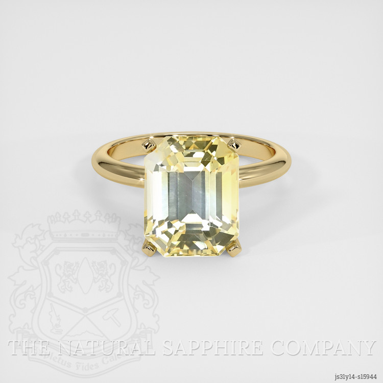 Discover the epitome of sophistication and rarity with our exquisite 5.11 carat emerald cut yellow sapphire ring. A unique gem hailing from the lush landscapes of Ceylon, this sapphire exhibits an exceptional clarity grade of eye clean, untouched by any imperfection to the naked eye. The dimensions, a perfect harmonization of 10.08 x 7.97 x 6.53 mm, accentuate the balanced symmetry of its emerald cut. An embodiment of radiance, its medium light color saturation gently refracts sunlight, creating a mesmerizing halo of golden luminescence that captivates and intrigues any discerning gaze.