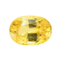 The ring features a beautiful, transparent 1.42 carat oval shape yellow sapphire with the dimensions of 7.58 x 5.32 x 3.87 mm and a mixed brilliant cut. It has a clarity grade of very slightly included (evaluated at eye level), intense color saturation, and an excellent polish. The origin of this sapphire is Ceylon.