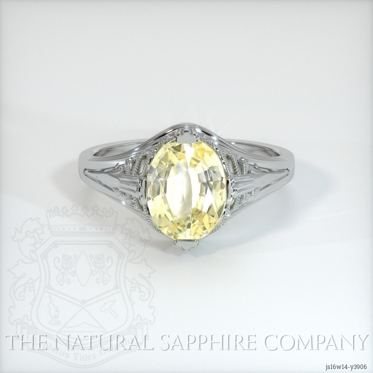 Antique Style Yellow Sapphire Ring 1.80 Ct., 14K White Gold