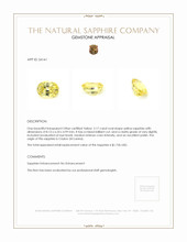 The ring features a beautiful, transparent Other certified Yellow 2.17 carat oval shape yellow sapphire with the dimensions of 8.13 x 6.24 x 4.99 mm and a mixed brilliant cut. It has a clarity grade of very slightly included (evaluated at eye level), medium intense color saturation, and an excellent polish. The origin of this sapphire is Ceylon (Sri Lanka).