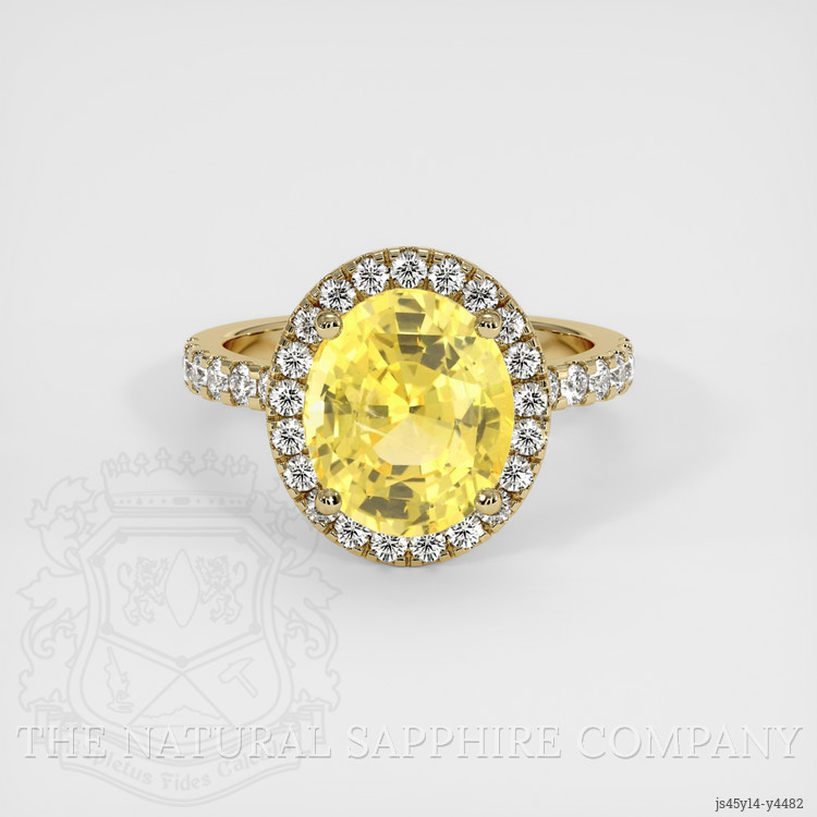 At The Natural Sapphire Company, we are proud to present a masterpiece that marries rich history with magnificent beauty. The centerpiece of this extraordinary ring is a GIA certified 5.04 carat yellow sapphire. With its oval shape and dimensions of 10.60 x 8.97 x 6.53 mm, the gemstone shines with an irresistible brilliance. Its modified brilliant cut only enhances the fiery dance of light across each facet. This sapphire originates from the ancient lands of Ceylon, present-day Sri Lanka, a location celebrated for producing sapphires of unprecedented clarity and color. Known as the jewel of the kings, a Ceylon sapphire is a statement of elegance, knotted in the threads of time, connecting its wearer to a lineage of royalty and elite.