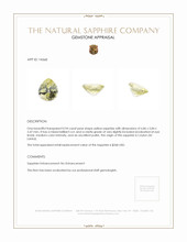 The ring features a beautiful, transparent 0.94 carat pear shape yellow sapphire with the dimensions of 6.86 x 5.84 x 3.47 mm and a mixed brilliant cut. It has a clarity grade of very slightly included (evaluated at eye level), medium color saturation, and an excellent polish. The origin of this sapphire is Ceylon (Sri Lanka).